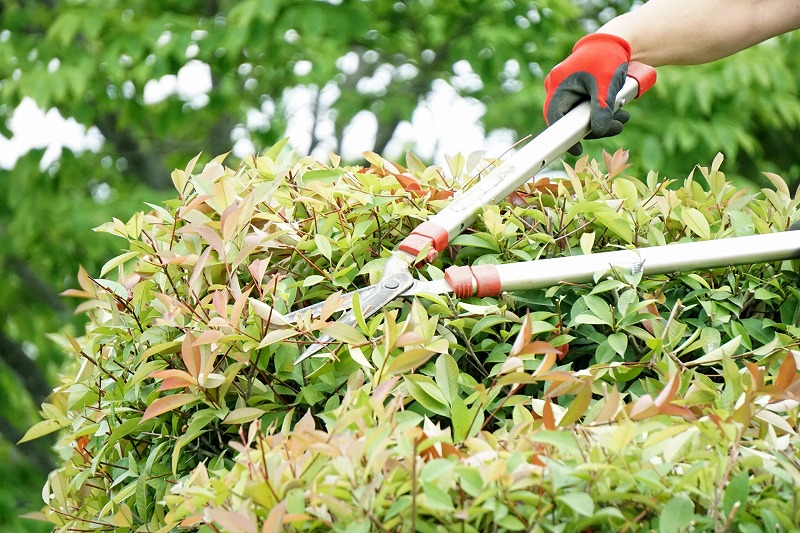 植木の枝を切ることで形を整えたり、風通しを良くしたりします。